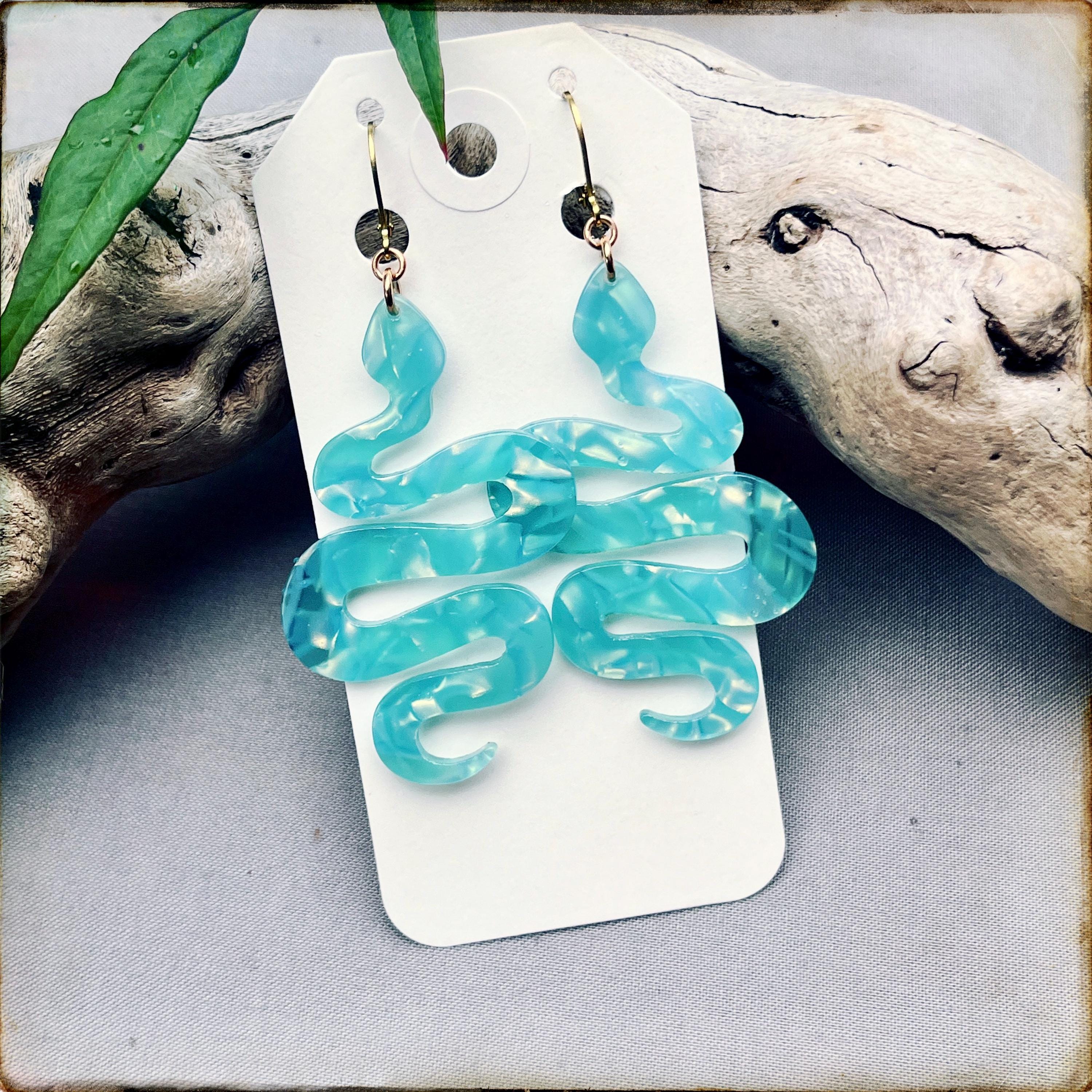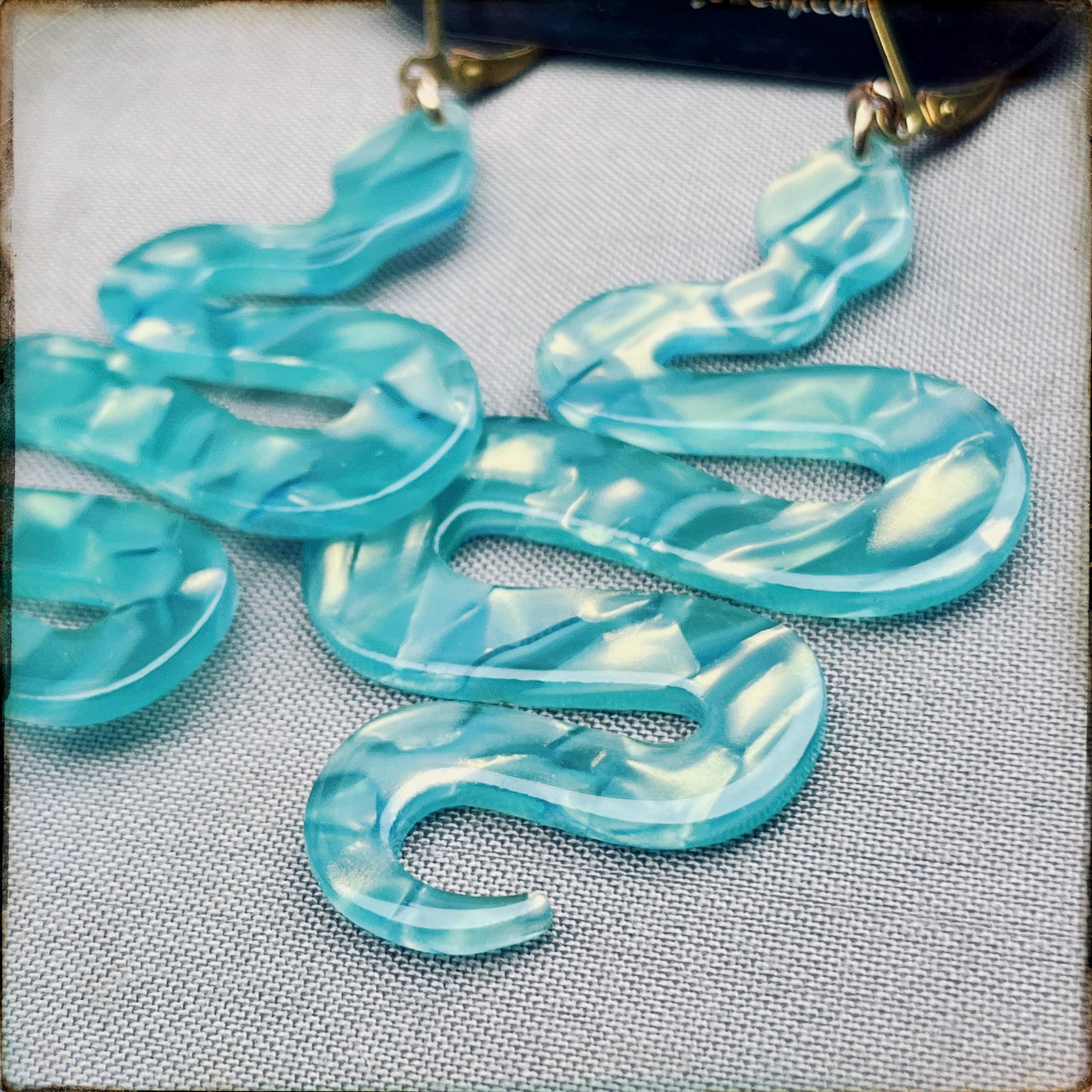 • Shimmery and bright aqua blue snake charms made of lightweight non-petroleum cellulose acetate