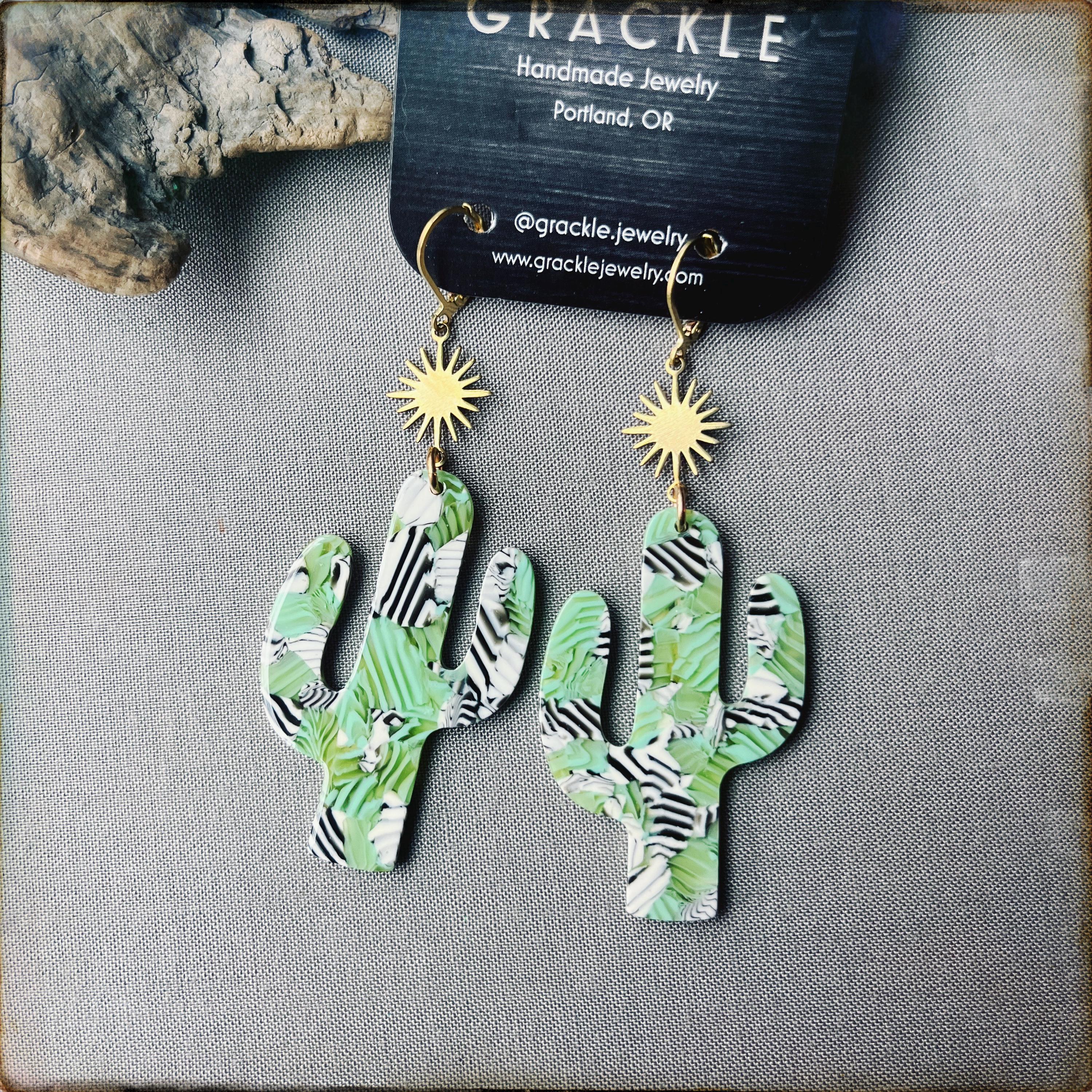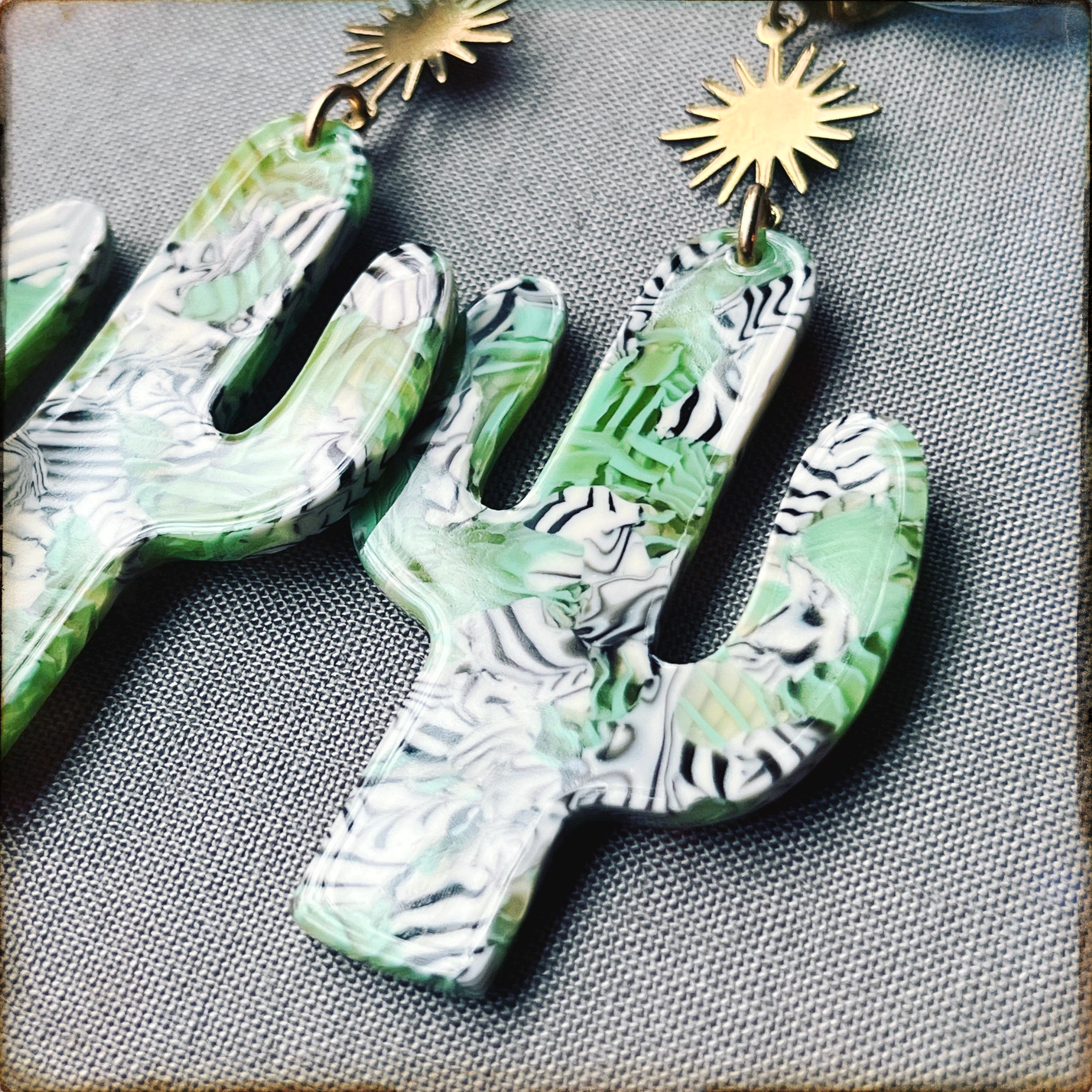 • Stripey green cactus charms made of lightweight non-petroleum cellulose acetate
