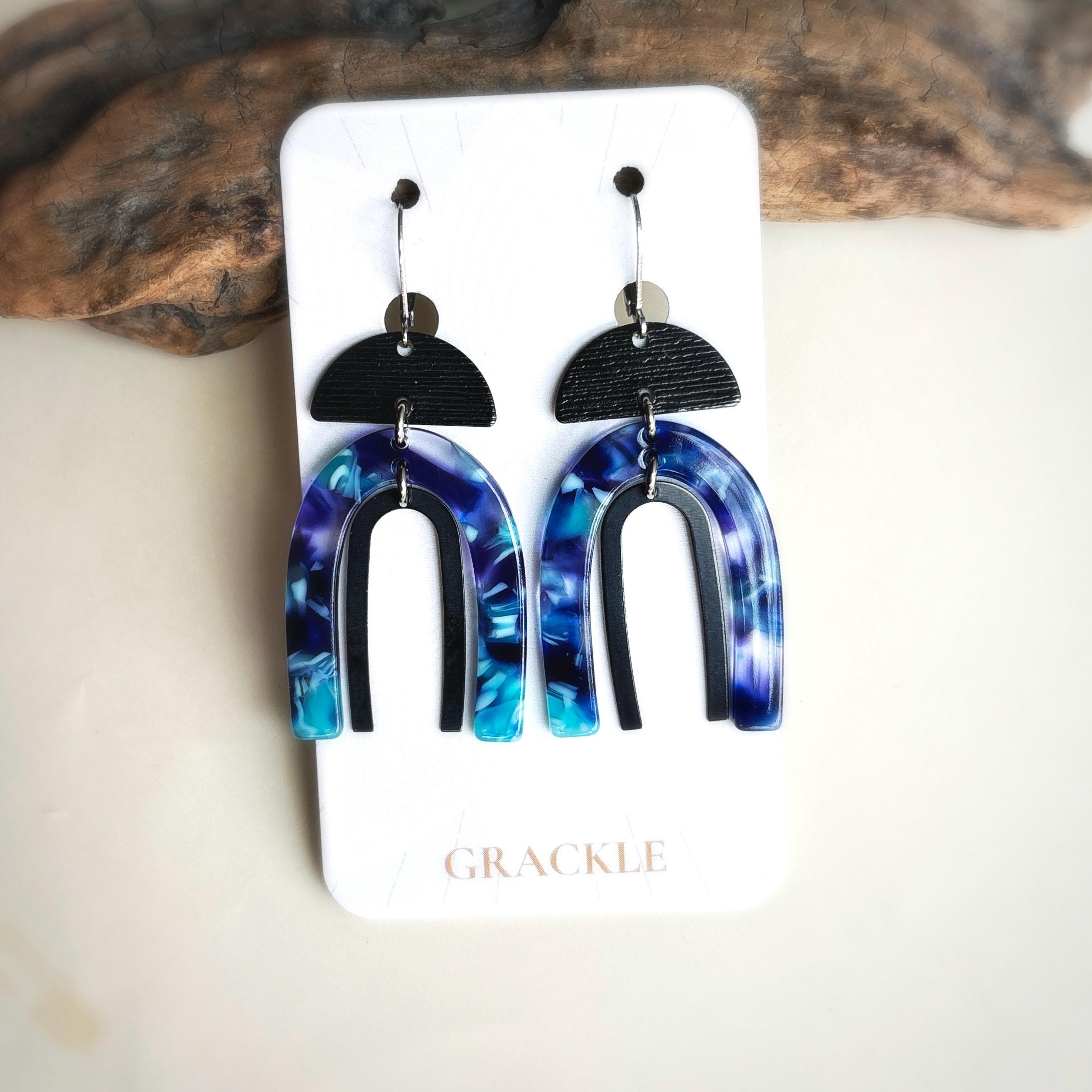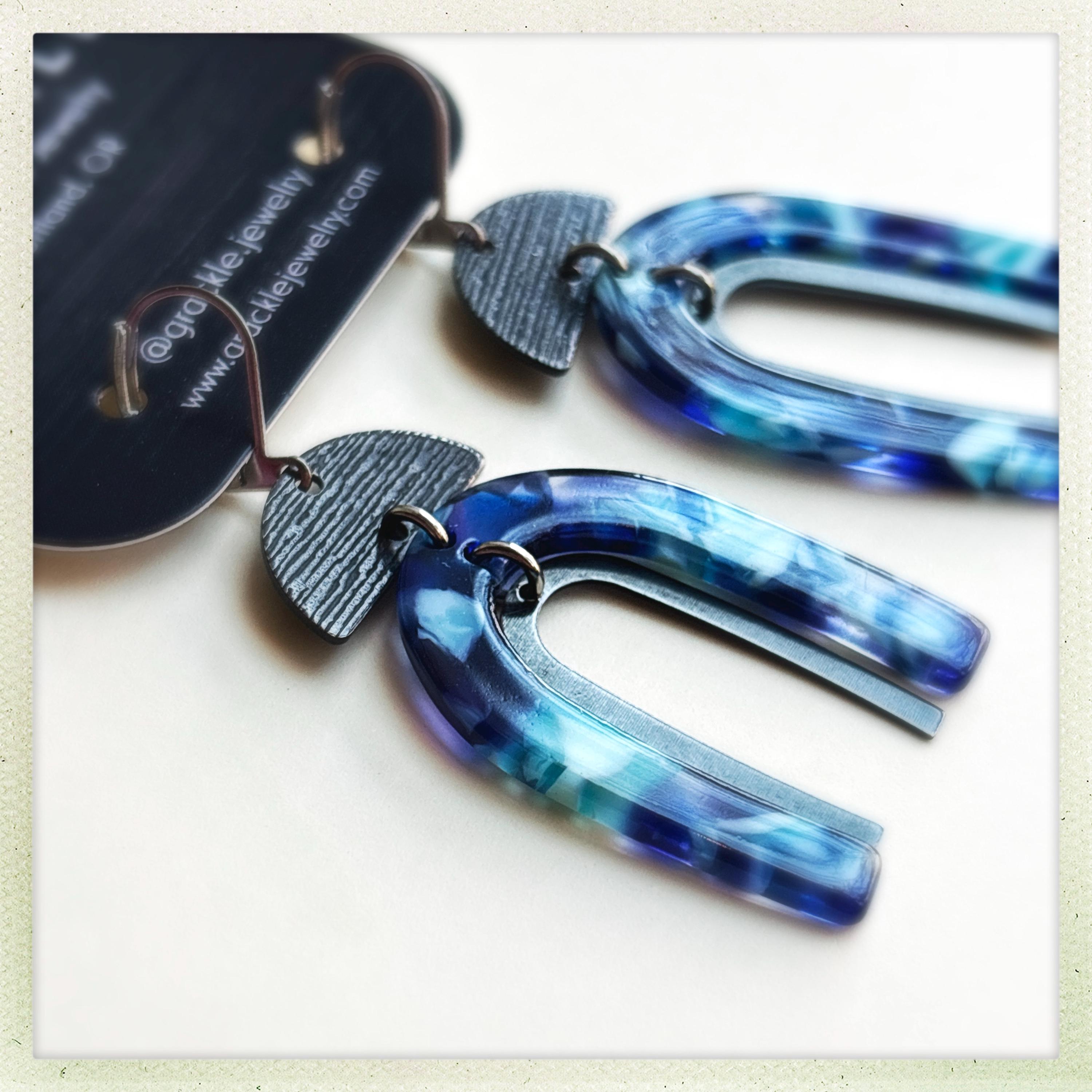 • Multicolored blue acetate arches with black oxidized brass semi circles
