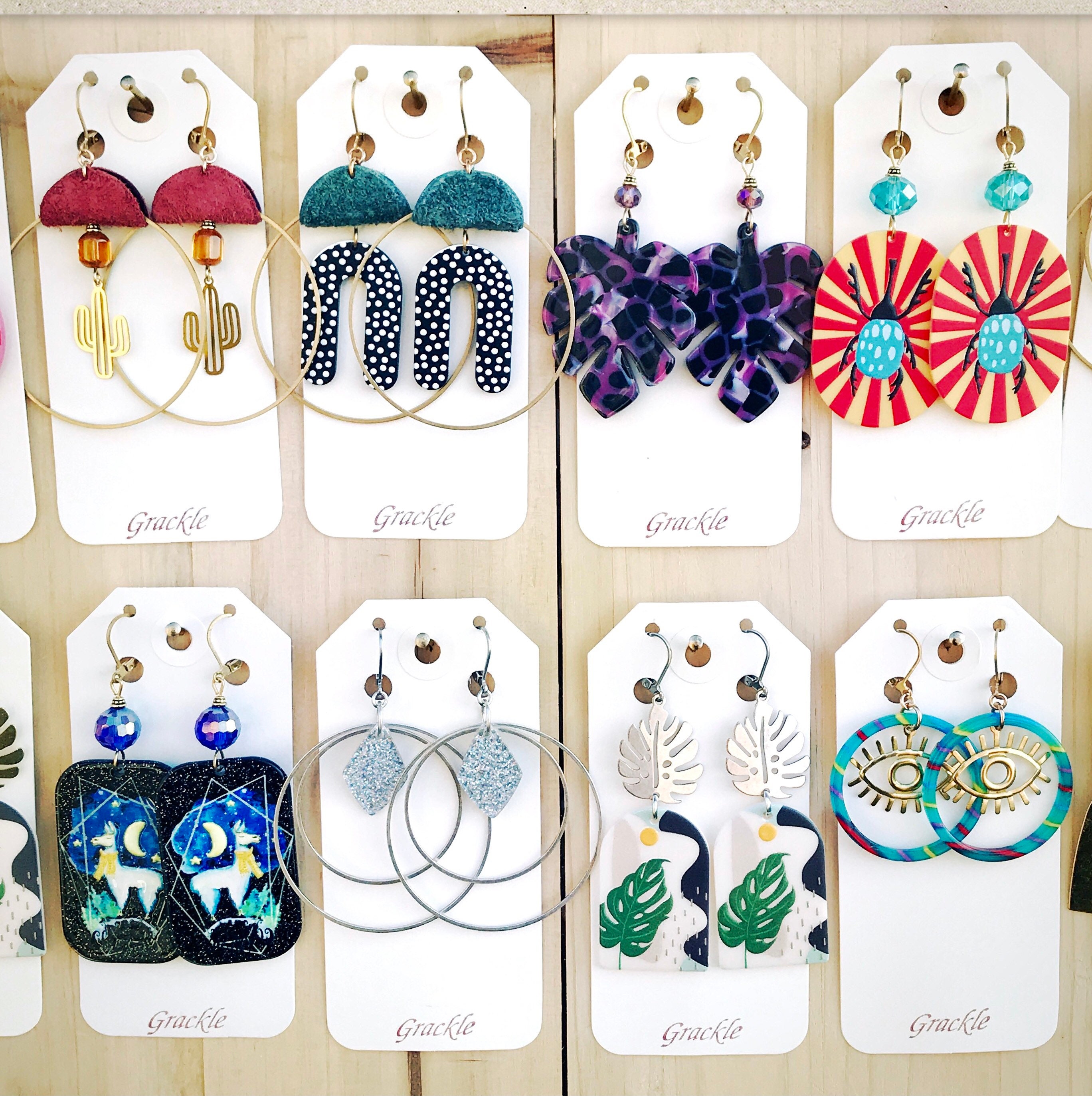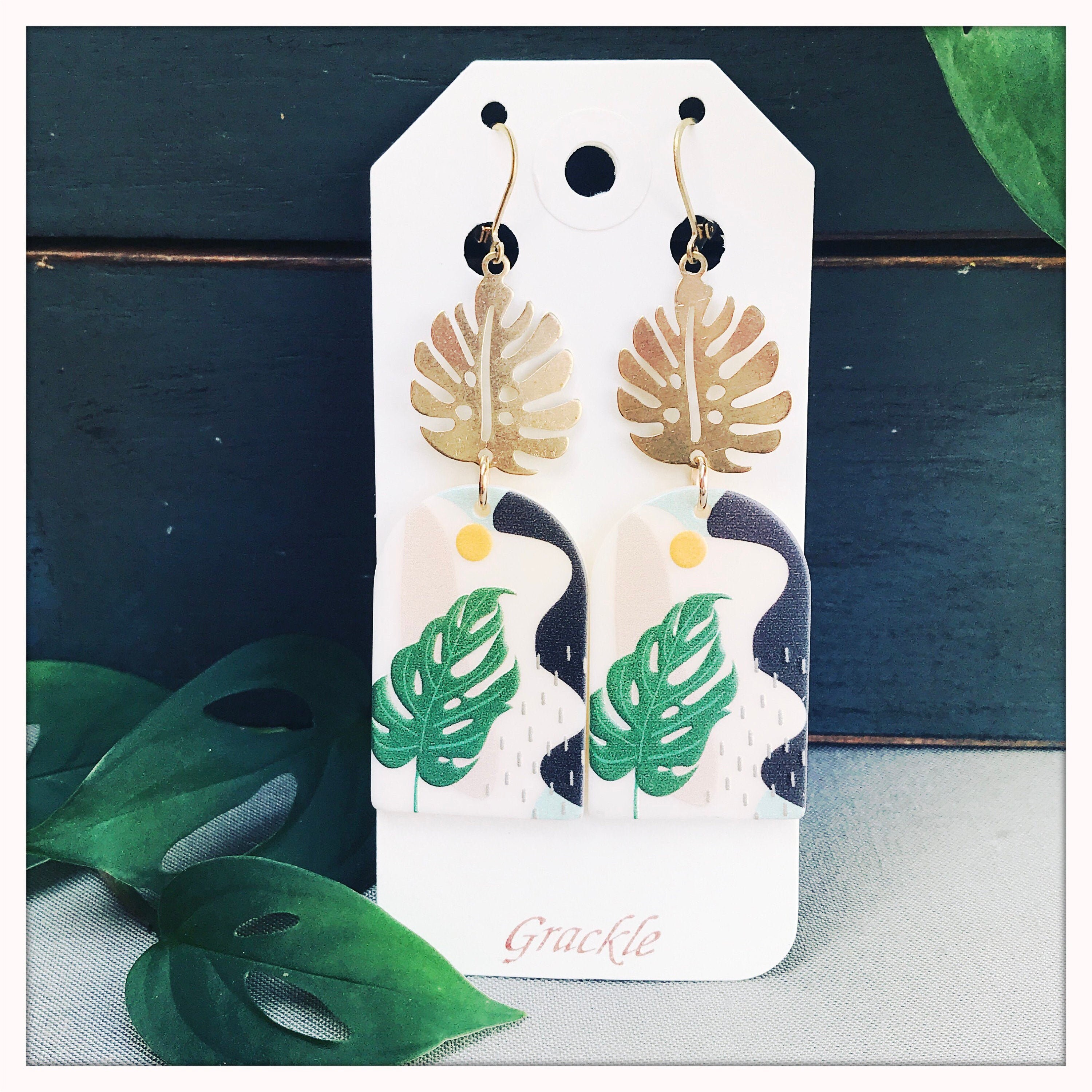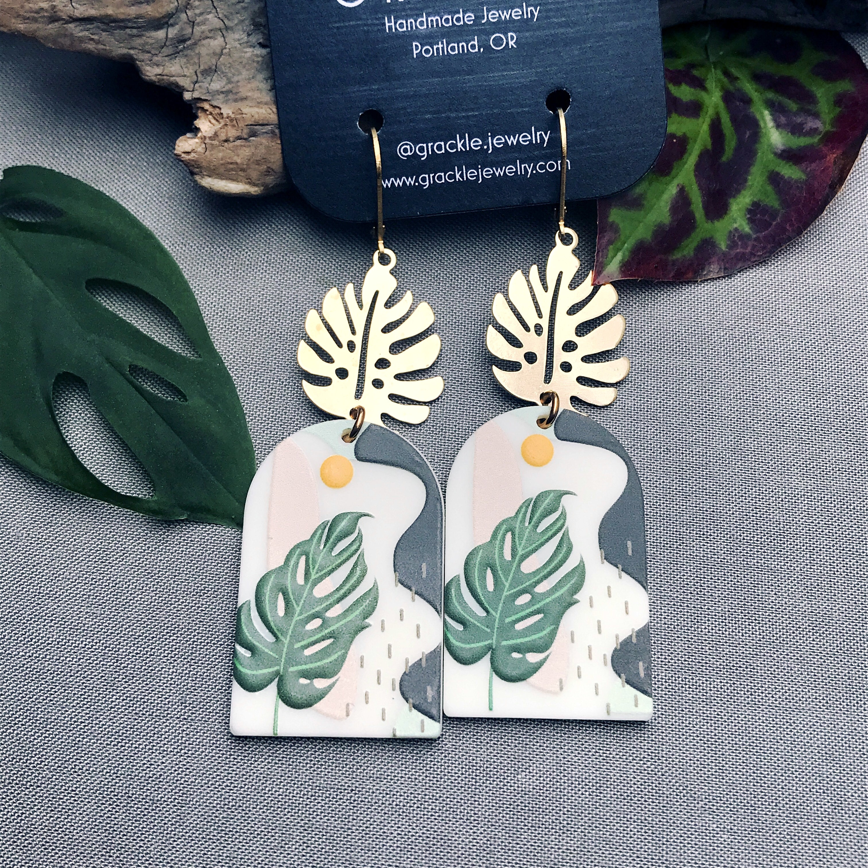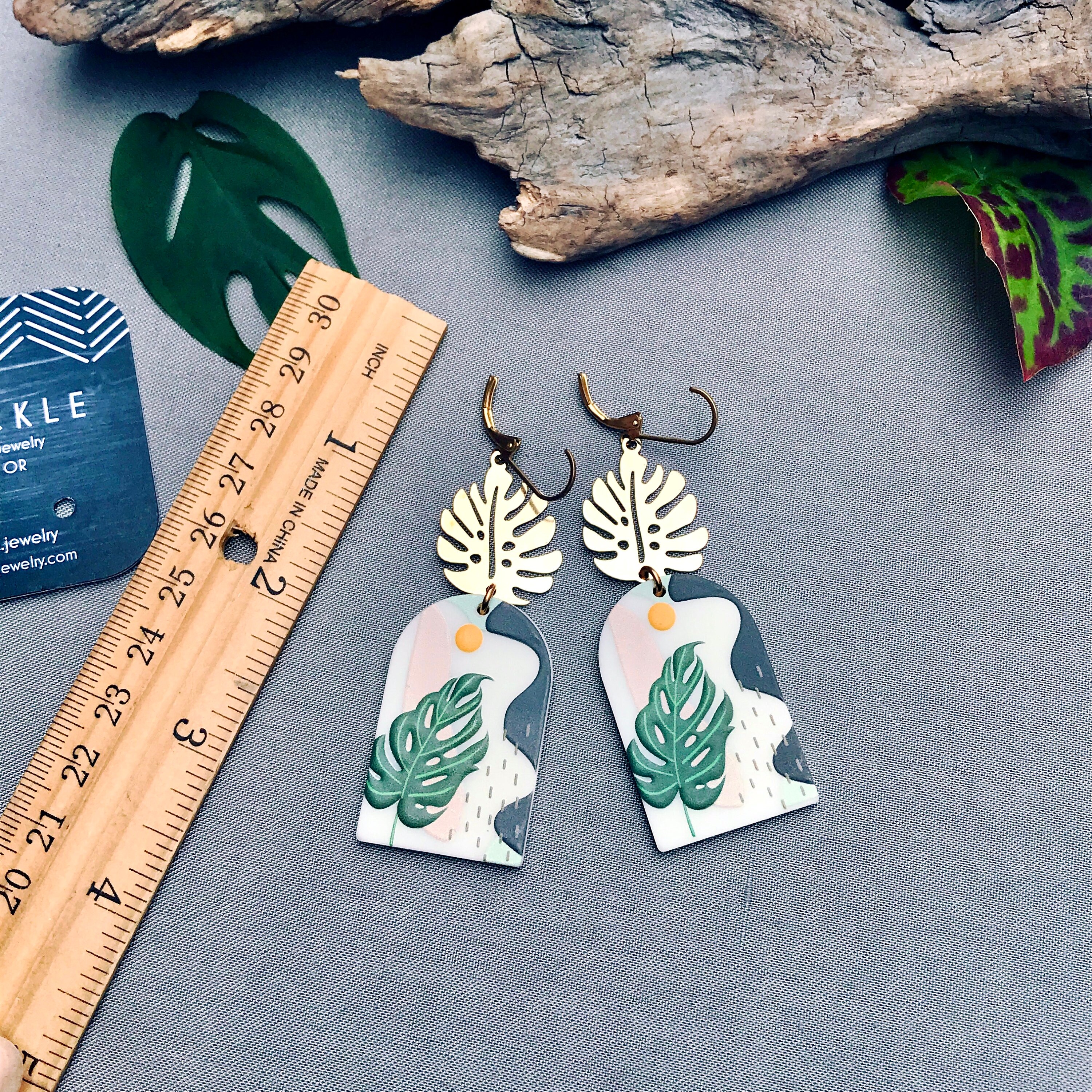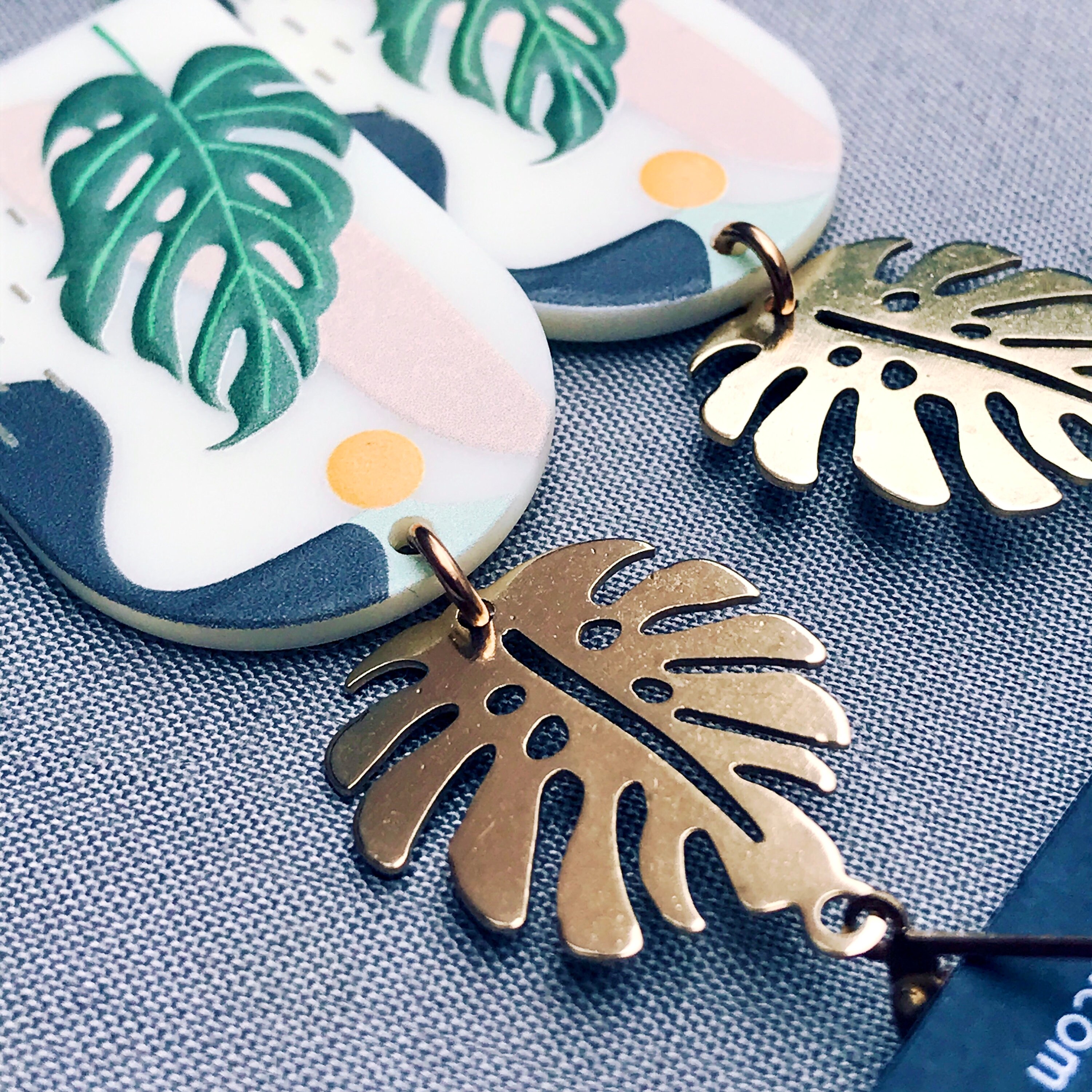 *Brass monstera leaf charms with painted acrylic plant pendants